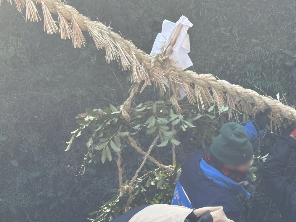 橋からは昨年の縄が落ちているのを確認しました。縄は藁で作られているためすべて天然素材ということで、そのまま土に戻っていくものと考えられます。