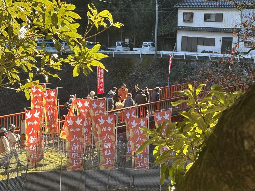 奥河内とも呼ばれる河内長野は山深い場所にあるからでしょうか?南河内地域の他の自治体と比べて、河内長野独自の行事や神事が残っています。1月上旬にある流谷八幡神社の勧請縄かけ神事もそのひとつです。