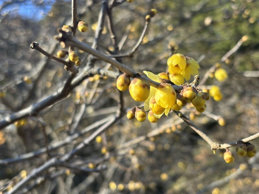 手前の蝋梅の多くはつぼみの状態でしたが、奥の方はどうでしょう。