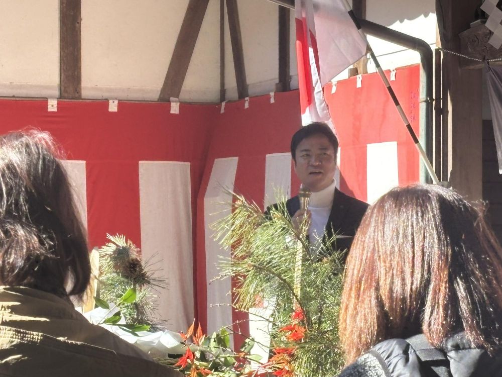 氏子総代の方々や市会議員などの来賓の方々立会いの下、神事が無事に終わりました。