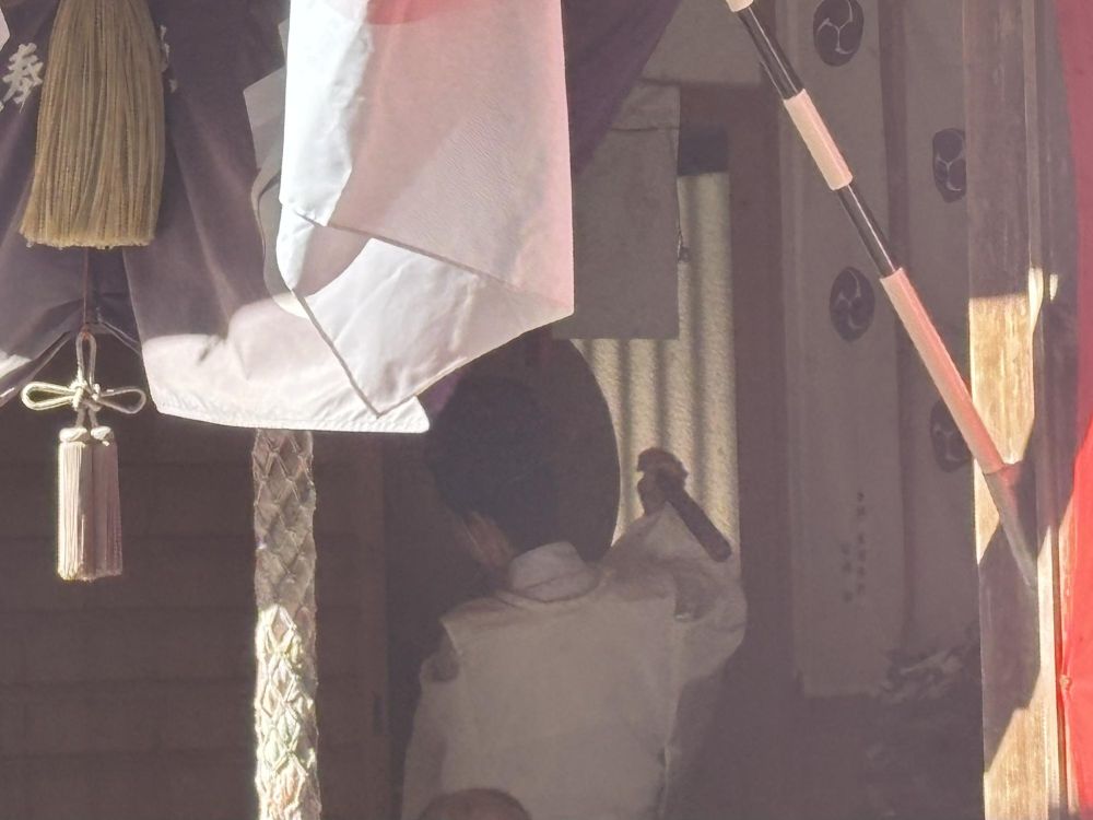神社の境内では地元の人を中心に作業が行われています。私が到着した時にはほとんど終わっていましたが、まだ細かい作業が残っていたようです。