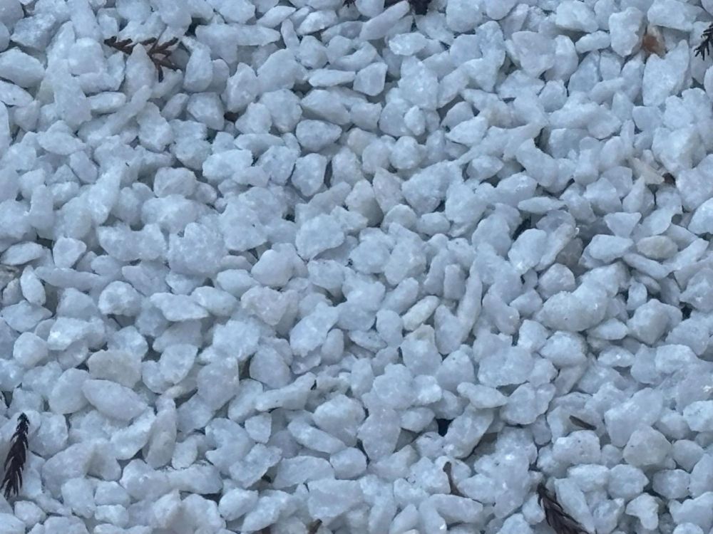 白い玉砂利が敷き詰められた蟹井神社の境内が雪景色のように