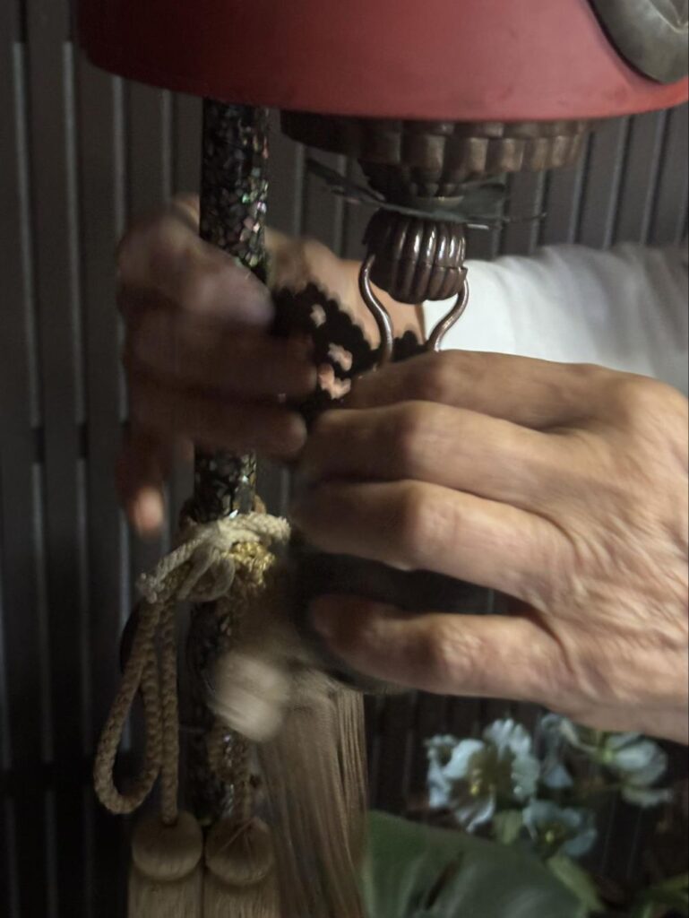 このほか大阪府教育委員会による「銃砲刀剣類登録証」の交付を受けている、鳥獣用のおどし鉄砲として使用していた火縄銃を間近で見せてくださりました。いずれにしても普段お目にかかれない貴重な資料を拝見できたことはとても勉強になりました。