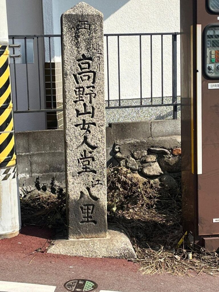 また上田町はかつて三日市宿の宿場の一部ですが、三日市宿は大坂(大阪)から八里(約32km)、高野山から八里とちょうど中間点にあたります。