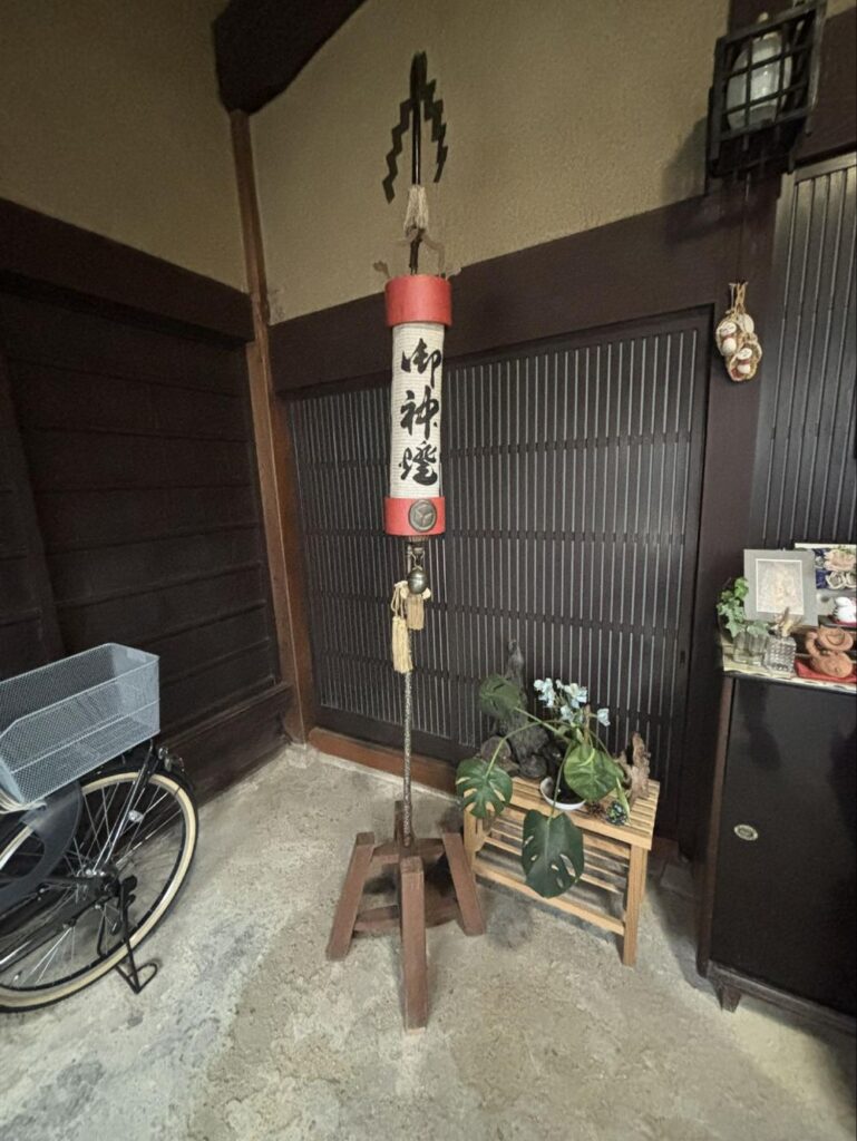 こちらは秋祭りの時に玄関の前に掲げられる提灯です。河内長野では提灯が宮入りするお祭りが行われていて、天見、流谷、滝畑では今でも提灯のお祭りが残っています。