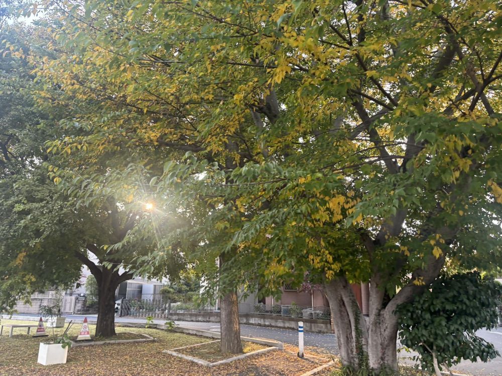 木に青い網がつけられています。クビアカツヤカミキリ対策です。