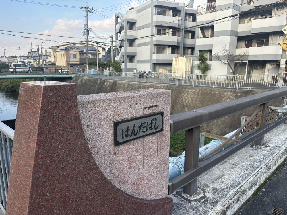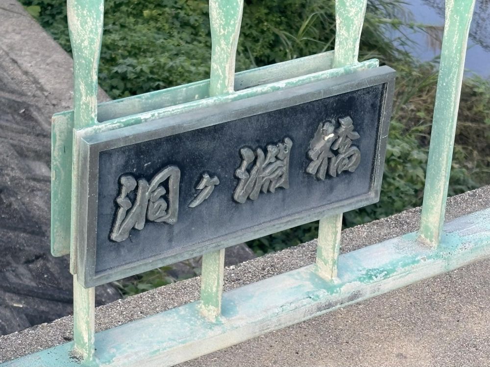 橋の名前は半田井堰橋です。先ほど見えた階段は人工的に川の水位を管理する井堰(いせき)のようです。