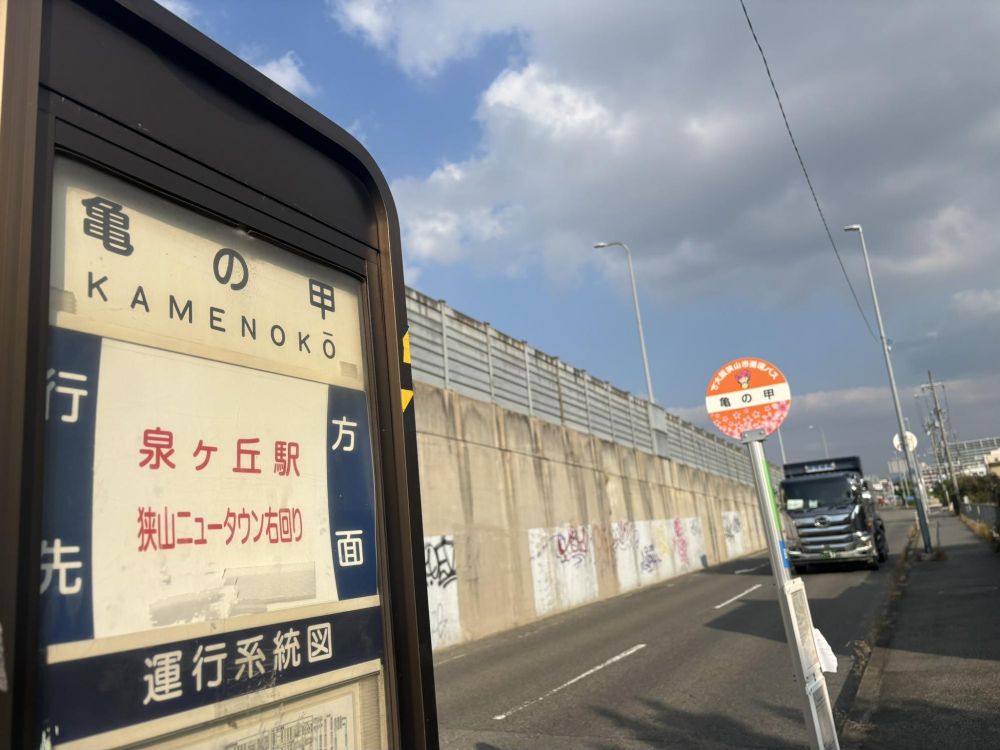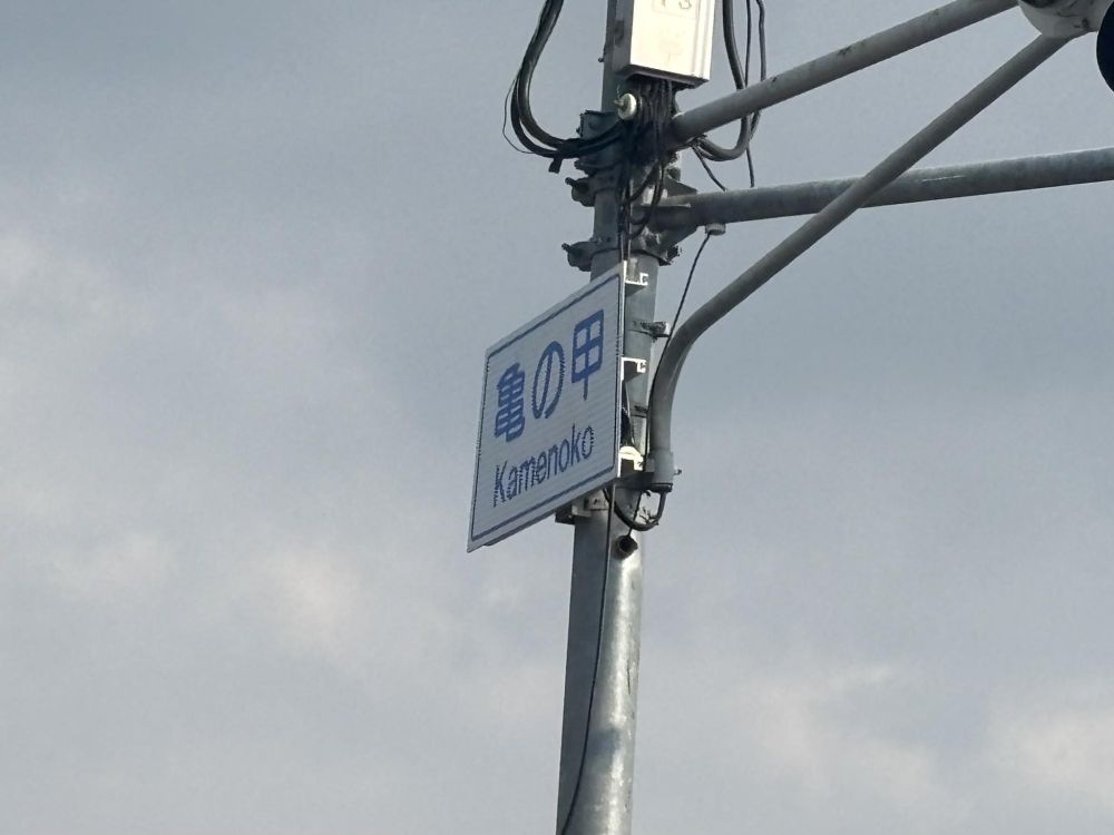 池に流入する川のあたりはいずれも池の南側(南西側)にありますが、近くに亀の甲という名前の交差点とバス停があります。