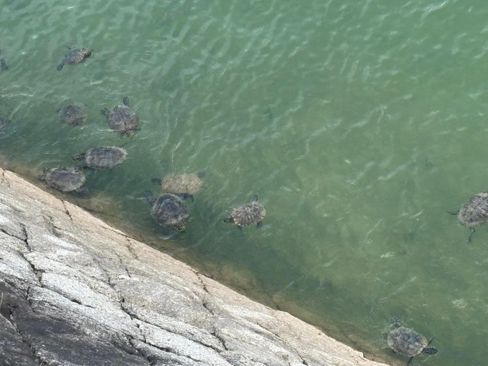 小高い場所が甲羅干しする亀の姿を思わせるところから名付けられたという説のほか、池に生息している亀が甲羅干しのために池から高台に上がってきたからこのような名前が付いたという説もあります。