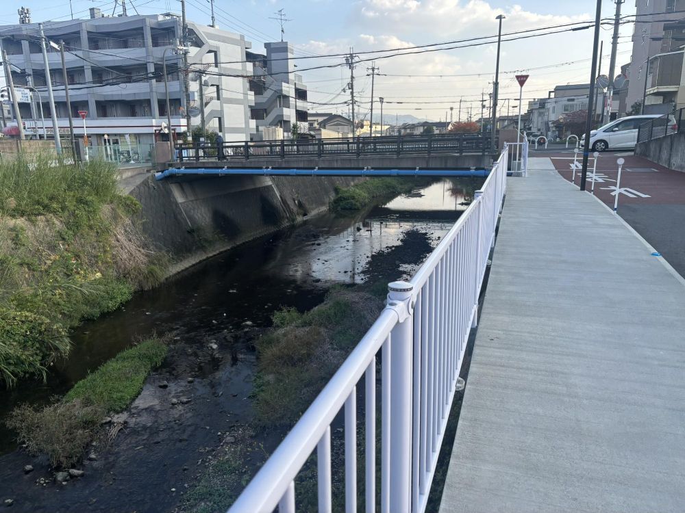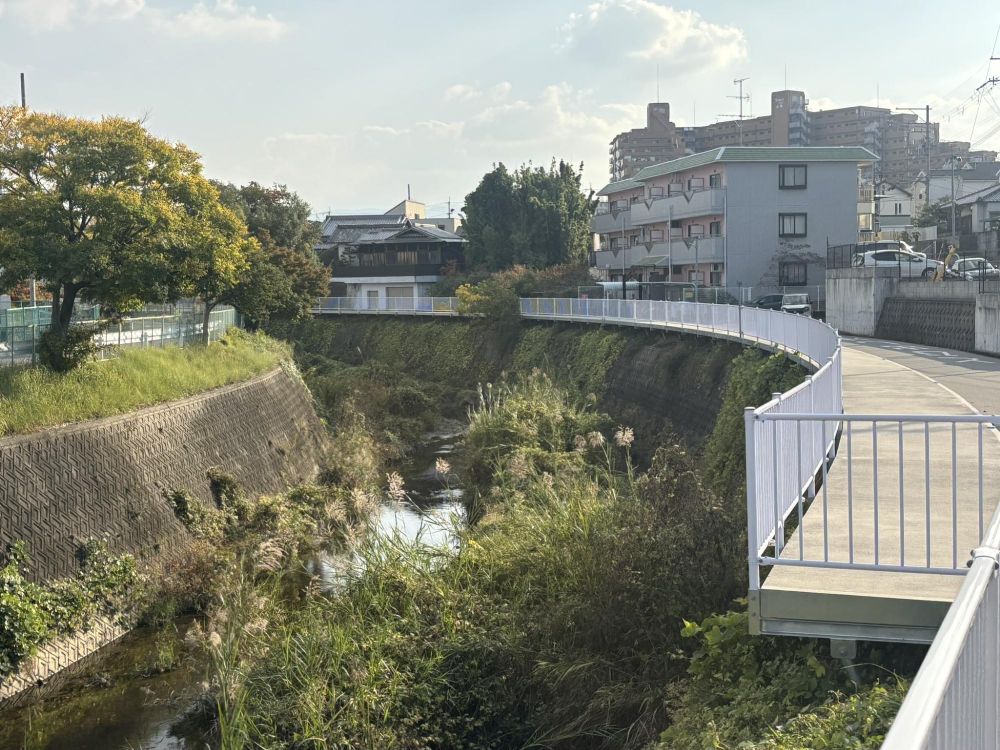 西除川が大きくカーブしていて、歩道が設置されています。この歩道は調べると2021年ごろから2023年ごろかけて整備されて設置されたものなのだそうです。