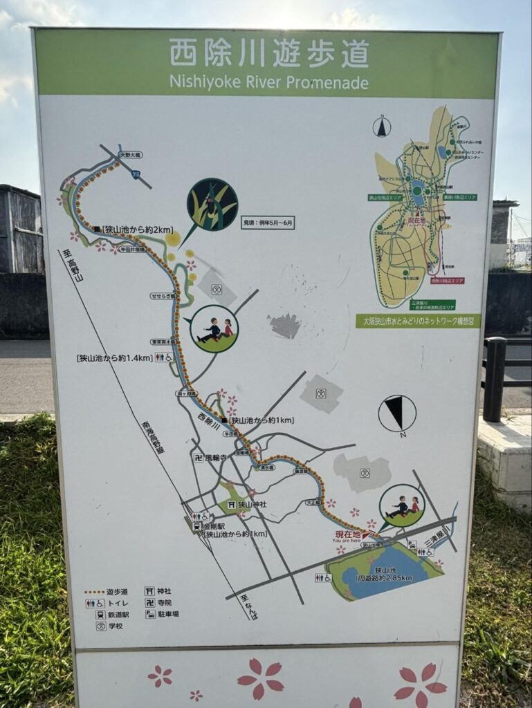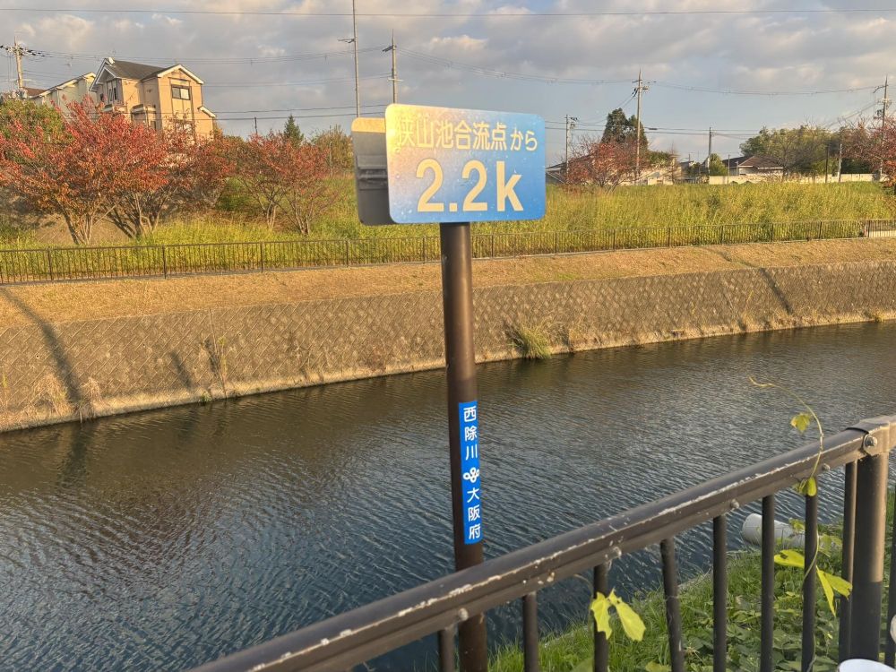 狭山池の合流点から2.2キロメートルほど歩いたようです。
