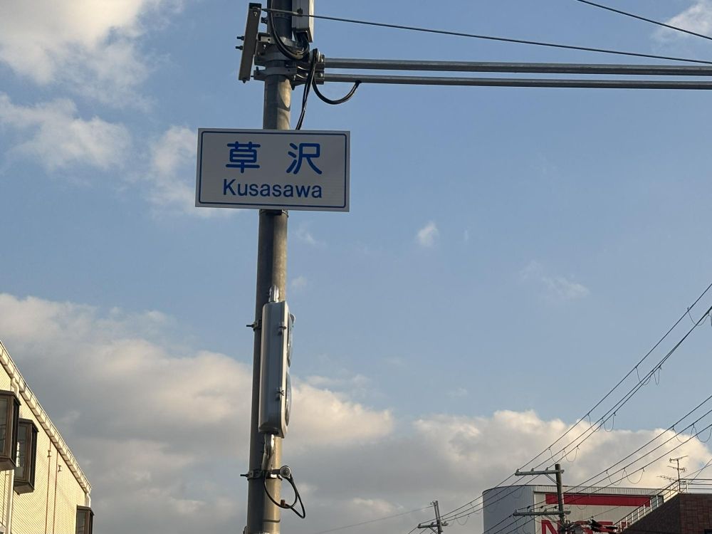天野大橋を渡ると交差点があります。草沢交差点は市境のすぐ手前にあります。交差点を越えて少し先に市境。河内長野市内になります。