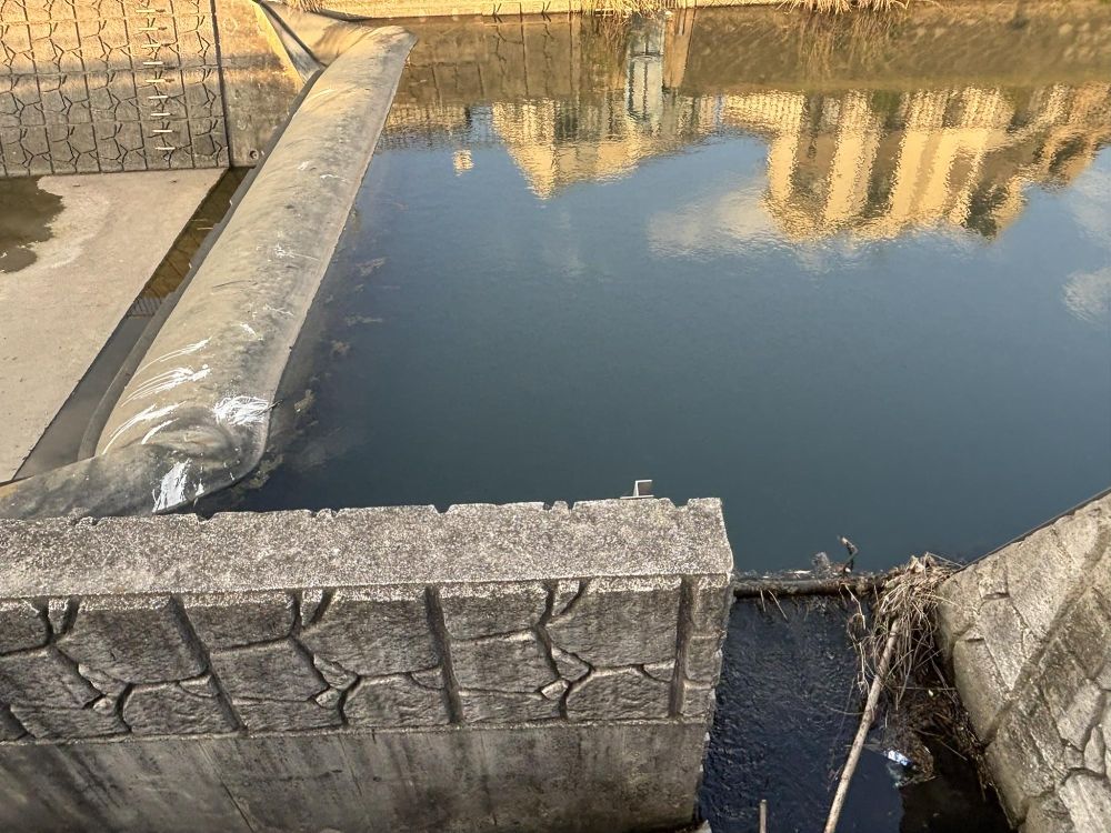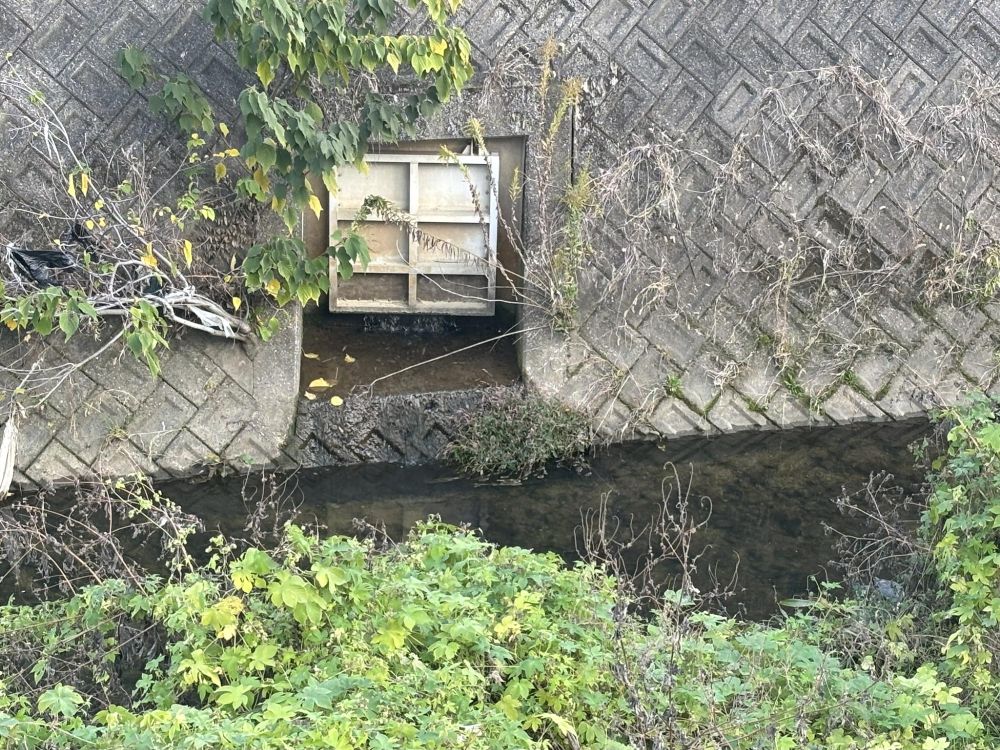 川を流れ込む排水溝のようなものが見えます。そして流入する水の調整をするためと思われる蓋(弁)が見えます。