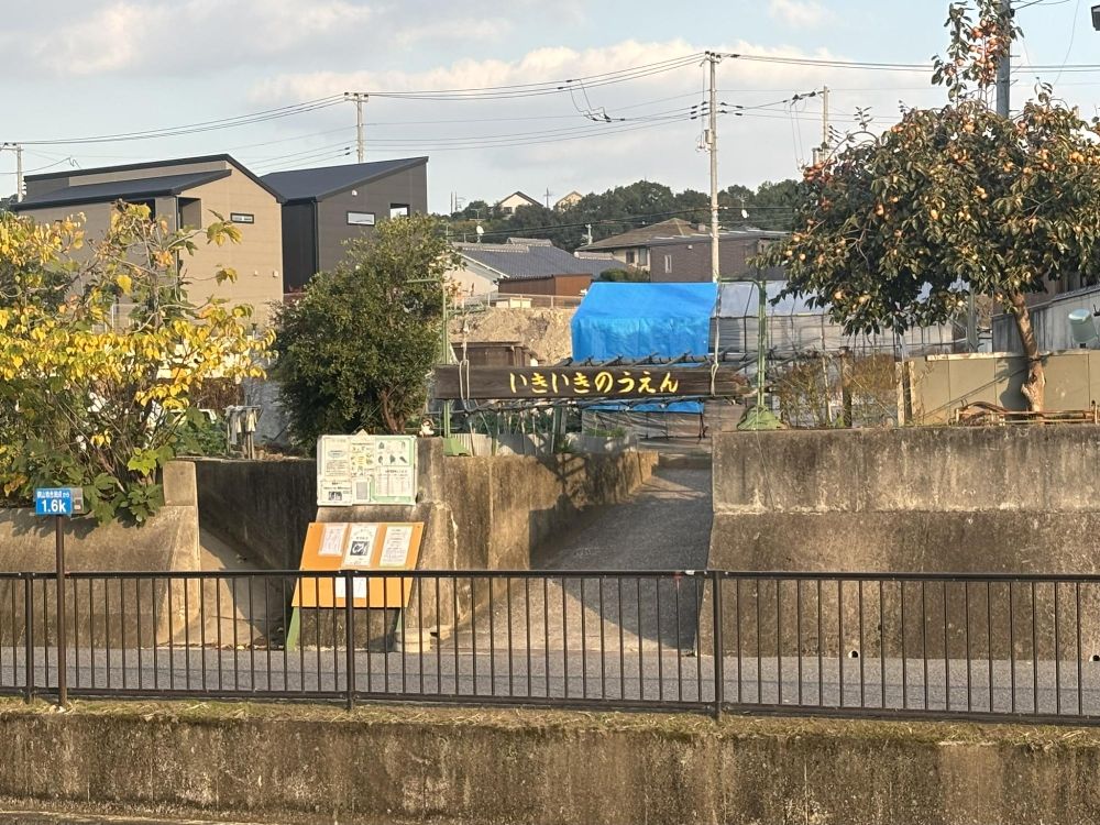 川の対岸を見ると「いきいきのうえん」が見えます。これは大阪狭山市と市民の協同事業として、2002(平成14)年にできた農園(外部リンク)で、2年後の秋に現在地に移転したそうです。