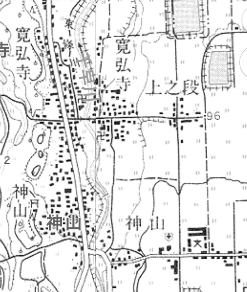 (1960年ごろの古地図を見ると神山から北東の方角に上之段の地名が見える)