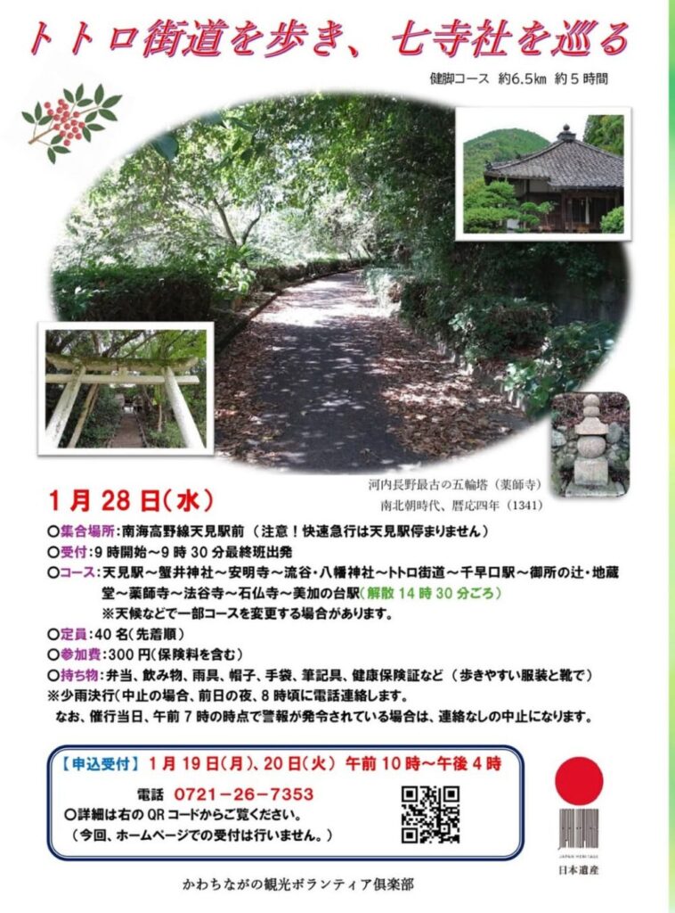 【河内長野市】トトロ街道を歩き七社寺を巡る!1月28日にかわちながの観光ボランティアによるガイドツアー19,20日申し込み(オリジナル)