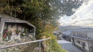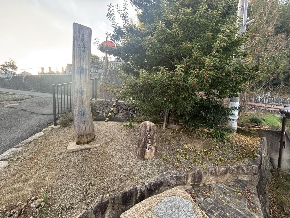 背後に墓地がある手前に、太子町の緑の一里塚がありました。