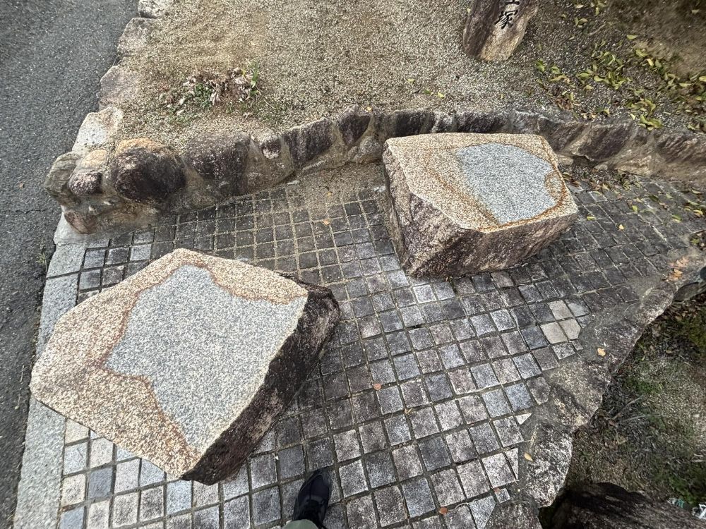 石でできたベンチがふたつありました。