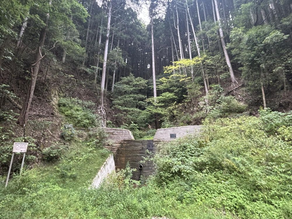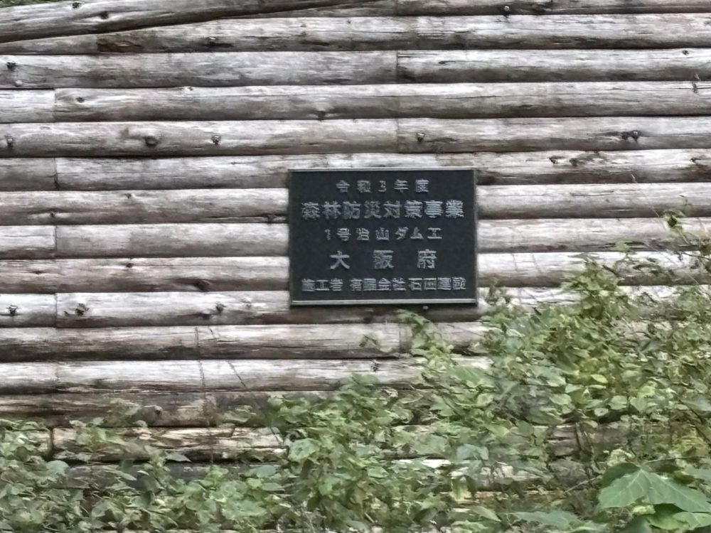 令和3年に森林防災対策事業で造られたダムです。壁の部分が丸太になっています。