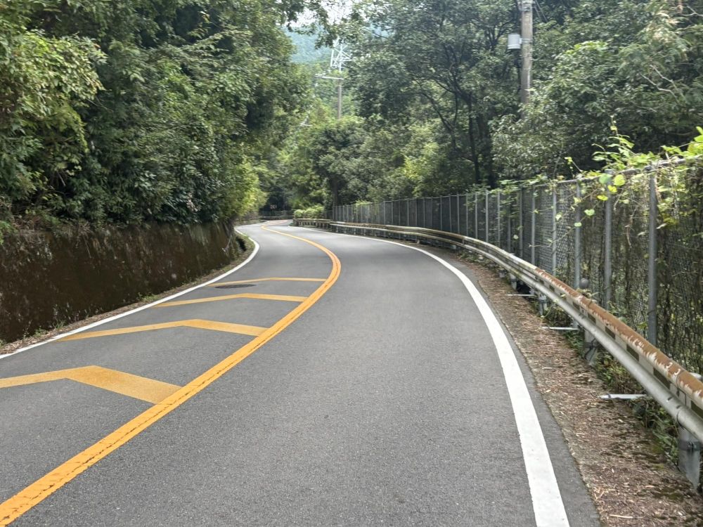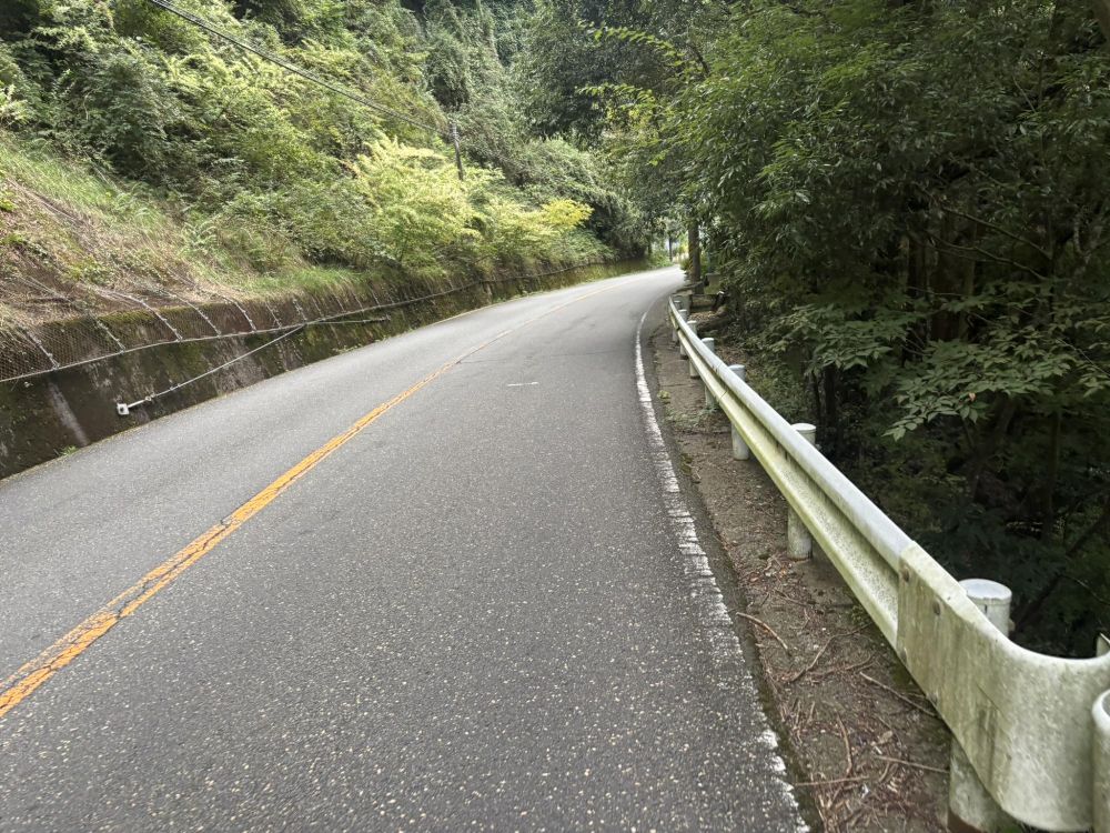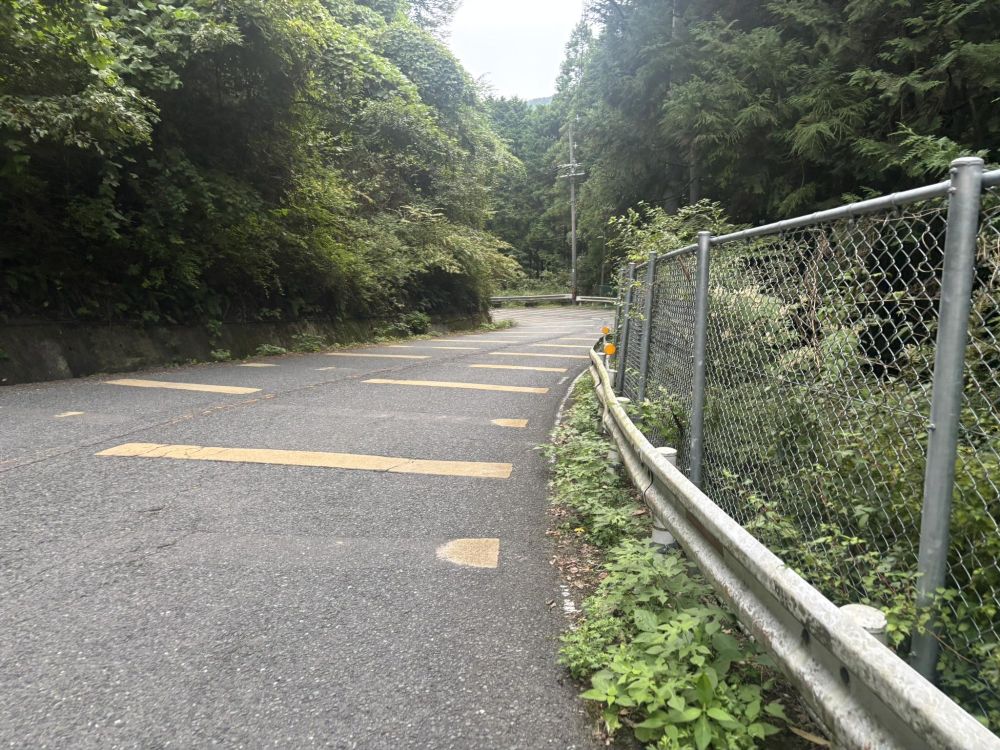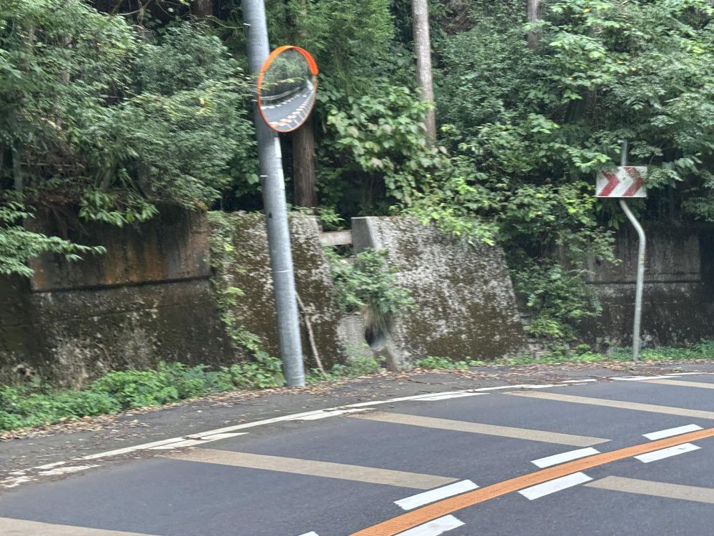 このあたりはやや急なカーブも多いので、ミラーなどもあります。