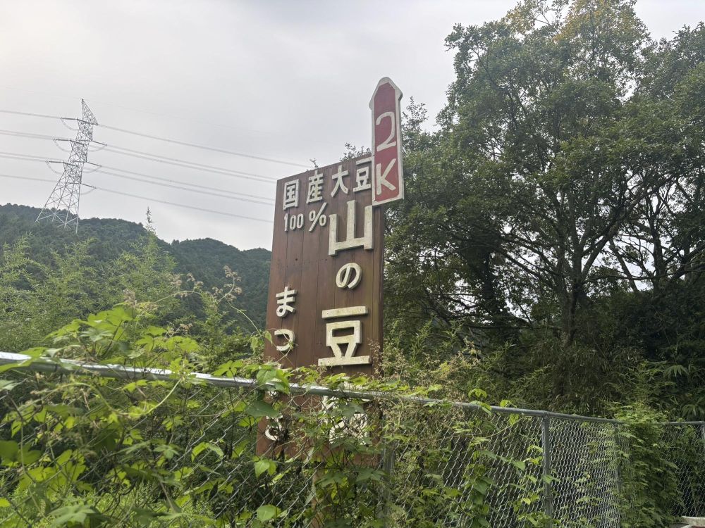 振り返ると「山の豆腐(まつまさ)」さんの看板でした。この地点から2キロメートルです。