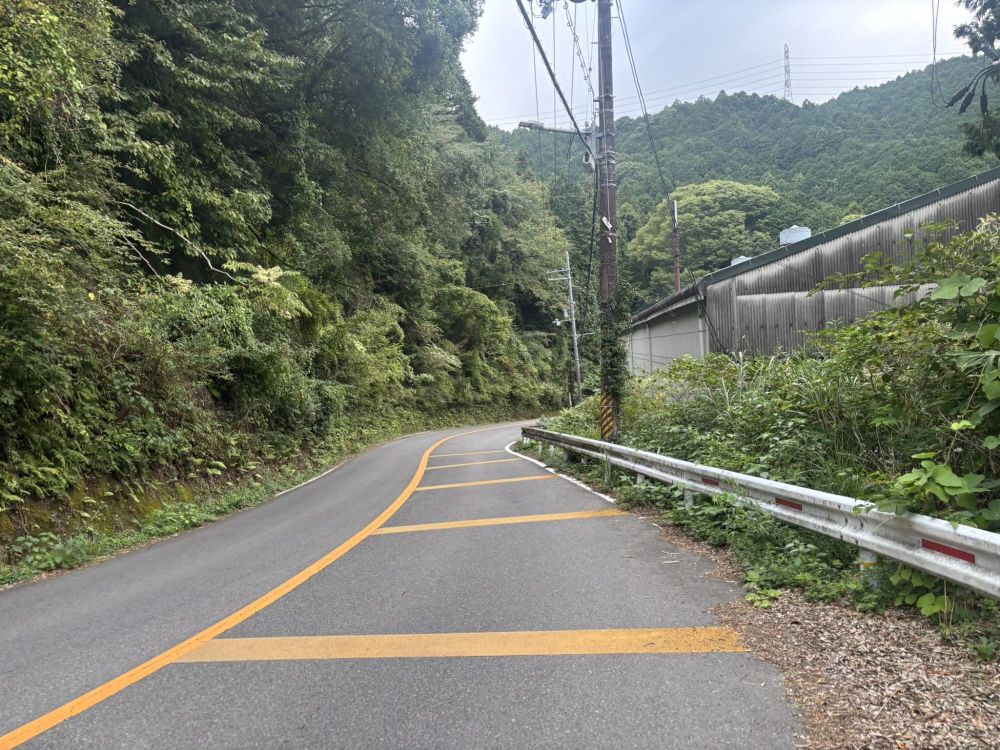ということで、片道1.5km程度ある千早大橋バス停から岩井谷バス停まで歩いて、高低差を実際に確認しました。ずっと下り坂なので少し早かったかもしれません。おおよそ20分強で歩くことができました。
