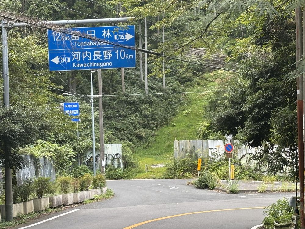 しばらく歩くと、河内長野方面との分岐点が見えてきました。南海バスのルートです。