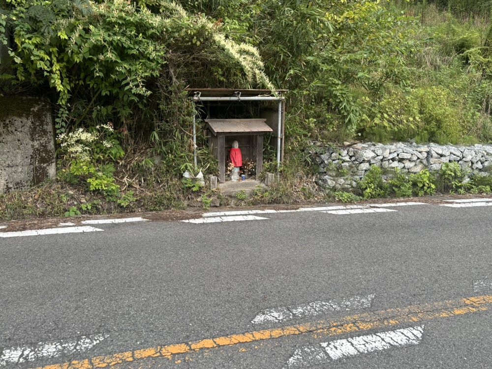 道路上に地蔵堂を発見しました。これも車だとまず気づかないですね。