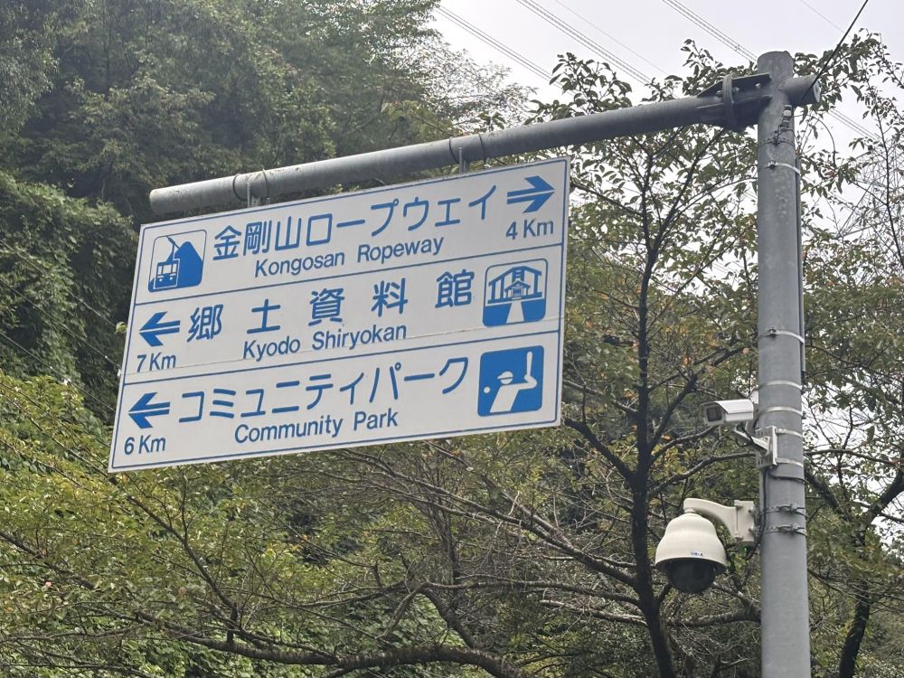道しるべがあります。この中で確実にあることがわかるのが郷土資料館ですね。コミュニティパークは調べても出て来ないのですが、位置関係からして千早赤阪村B&G海洋センターや千早赤阪村民運動場のような気もします。