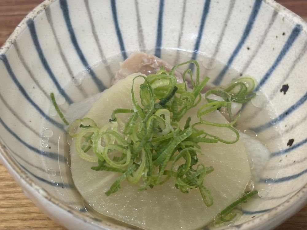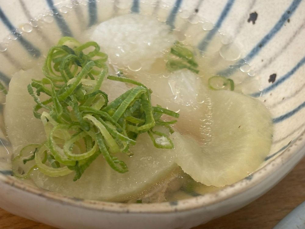 大根の下に長芋が入っていました。大根の歯ごたえと、長芋の異なる歯ごたえが楽しめるのが良かったです。