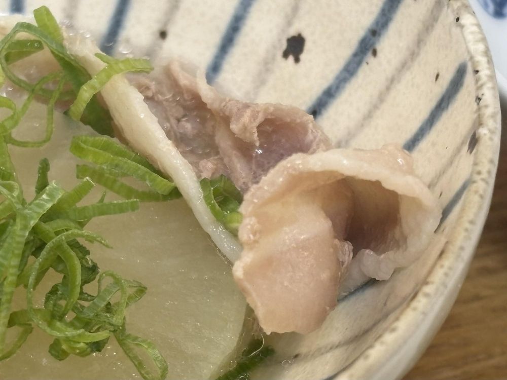 さらにその下には豚肉が入っています。大根に旨味を提供していたのはこの豚肉だったようですね。
