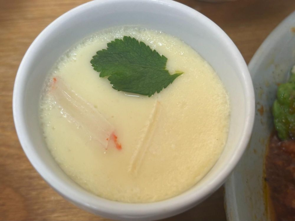 そして、茶碗蒸しです。すし店のランチだとよく見かける茶わん蒸しですが、カフェでは珍しい気がしました。