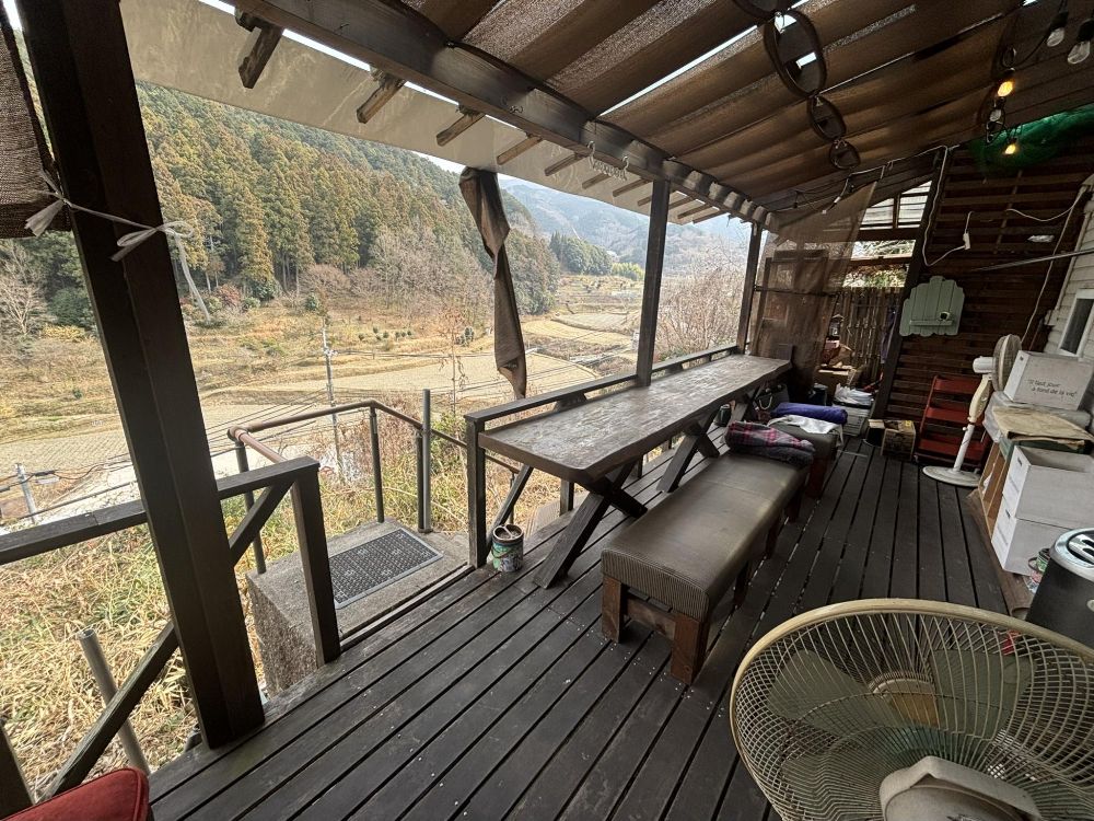 今の時期は寒いので難しいですが、トイレの奥にウッドデッキがありました。店内は禁煙なので、喫煙する場合に利用できるとのこと。
