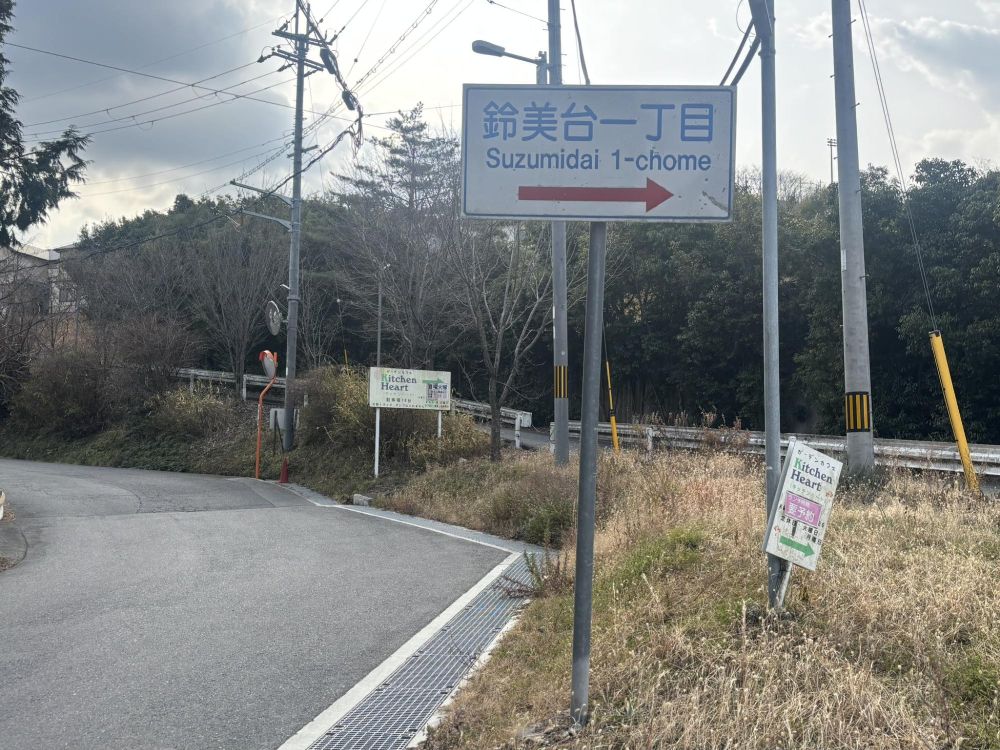 私はお店に向かうために、鈴美台3丁目南バス停で降りて坂を上っていきました。