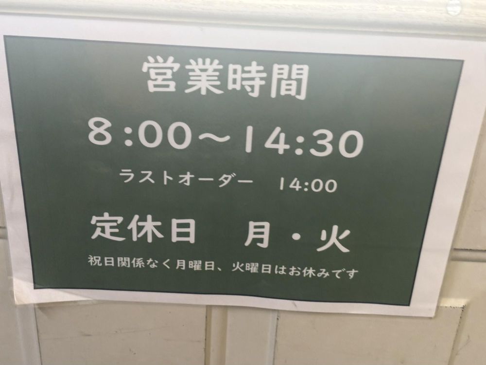 キッチンハートさんは朝8時から営業をされていて、ランチタイムが終わる14時30分で閉店です。(ラストオーダーは閉店30分前)