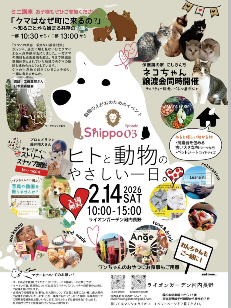 2025年はクマによる人身事故が例年以上に多く、熊の捕殺が過去最高となりました。そんな中、絶滅危惧個体群とされていた地域での駆除も進められていることを踏まえ、「クマとの共存、殺さない被害対策」を一緒に考えようという日本熊森協会主催の無料講座です。10:30からと13:00からの2部構成となっています。