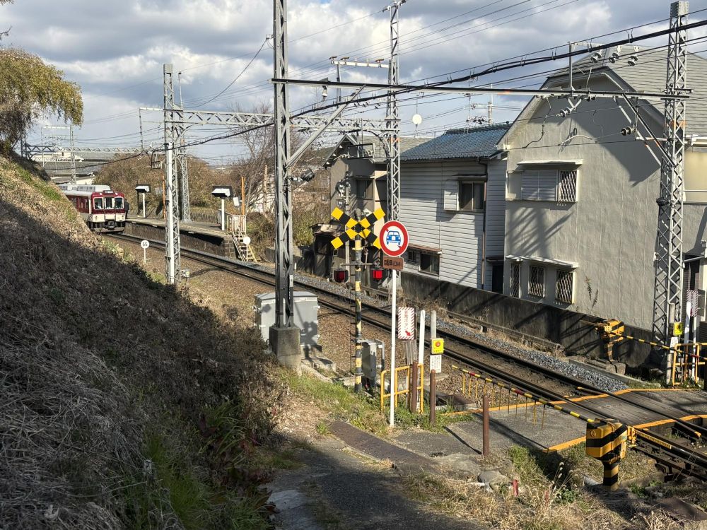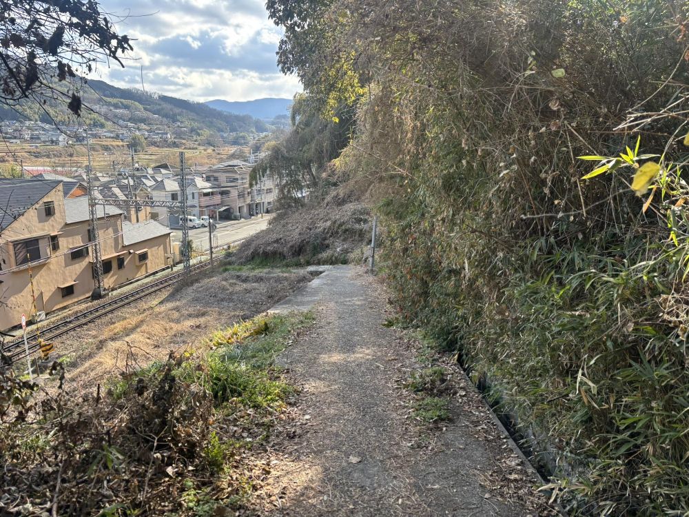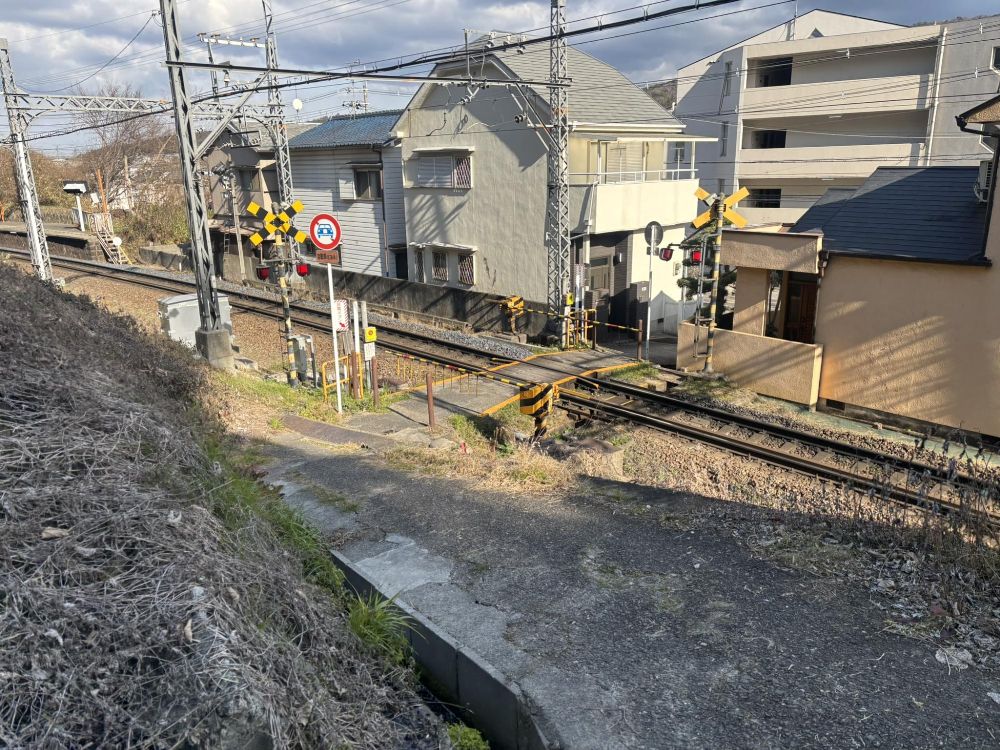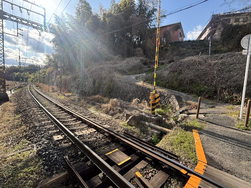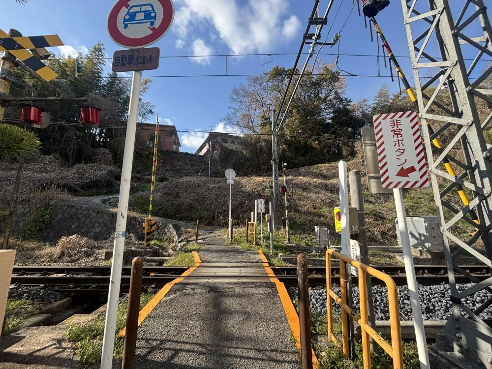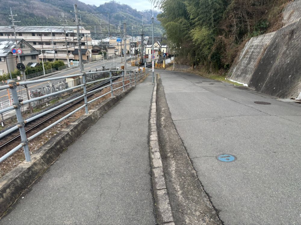 しかし、その踏切とは反対側、河内長野駅方面にも踏切があります。そして踏切を渡ると急な坂道で崖を上がれるのですが、そこは地元の人しか知らなそうな細い道で、車も通れません。
