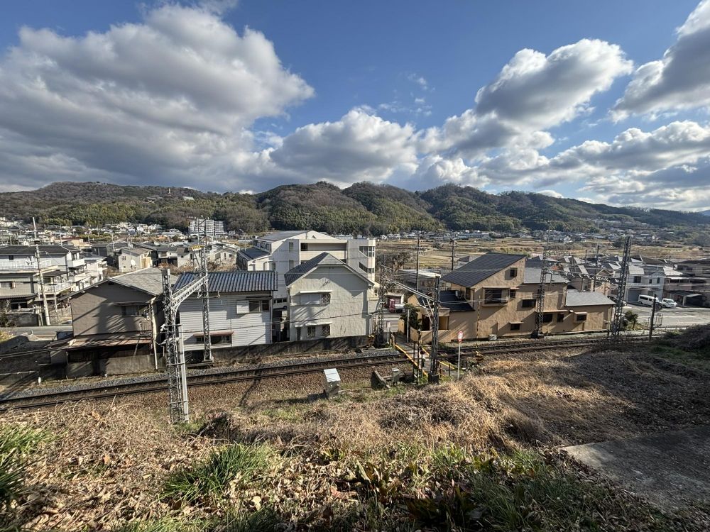 けっこう見晴らしが良いです。汐ノ宮駅近くの踏切が見え、その先には富田林最高峰の金胎寺山や願昭寺が見渡せます。