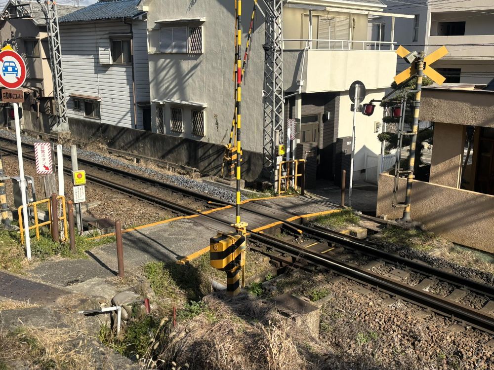 という事で踏切を渡りました。電車は河内長野駅に向かって視界から過ぎ去っていきました。