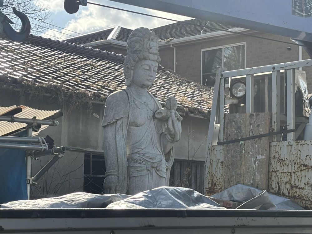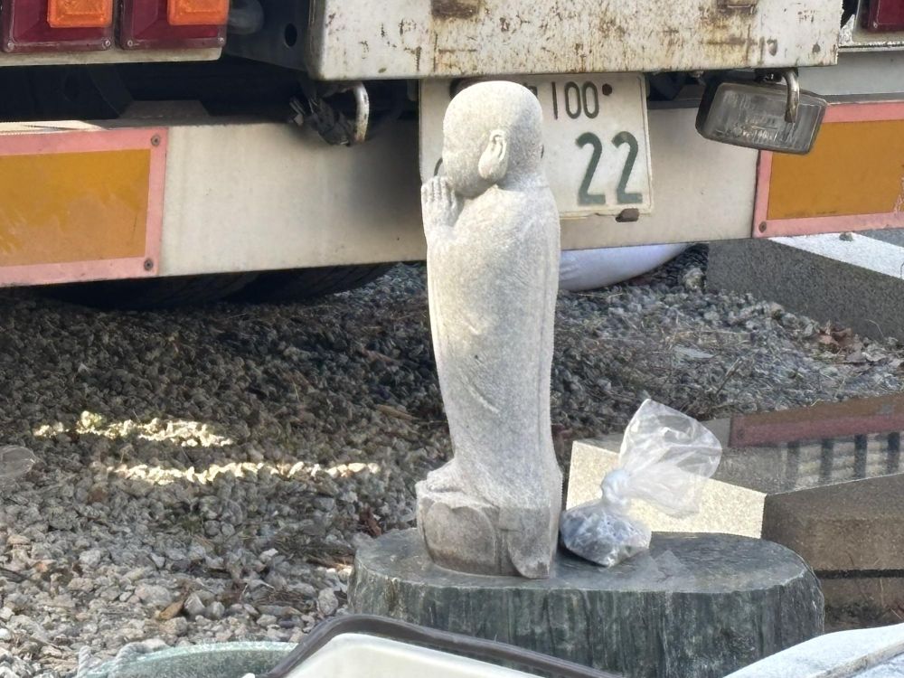 ここは石材屋さんのようでした。地蔵菩薩らしき小さな像もありました。