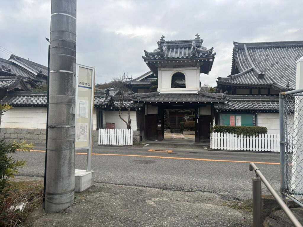 バス停の前にあるのが、九品山 西楽寺です。浄土真宗本願寺派ということ以外は特に情報は出てきませんが、門の上に鐘楼がある鐘楼門になっている建物が特徴的です。