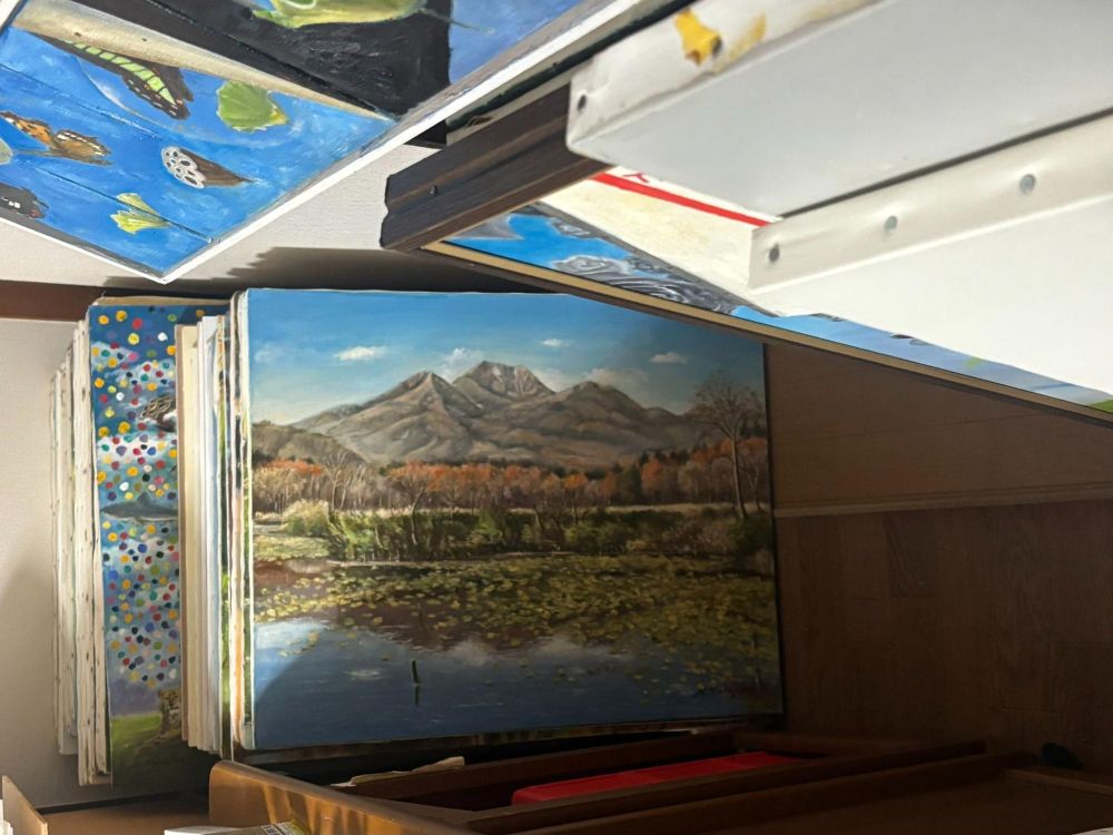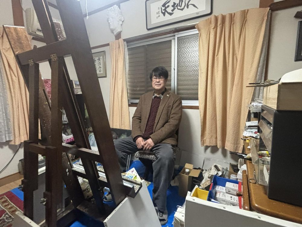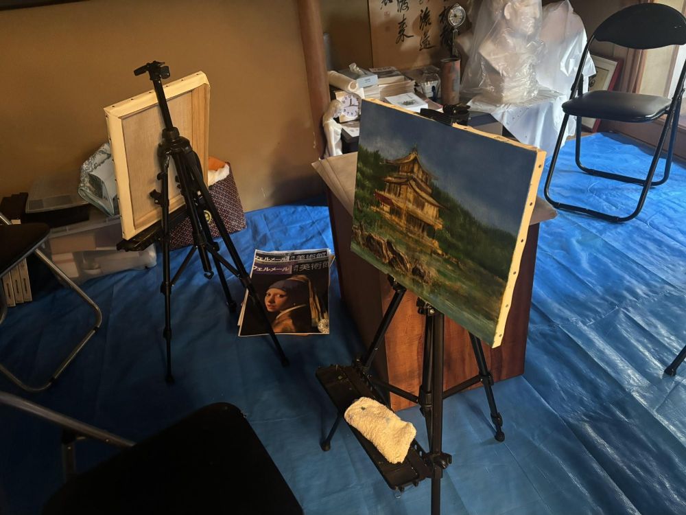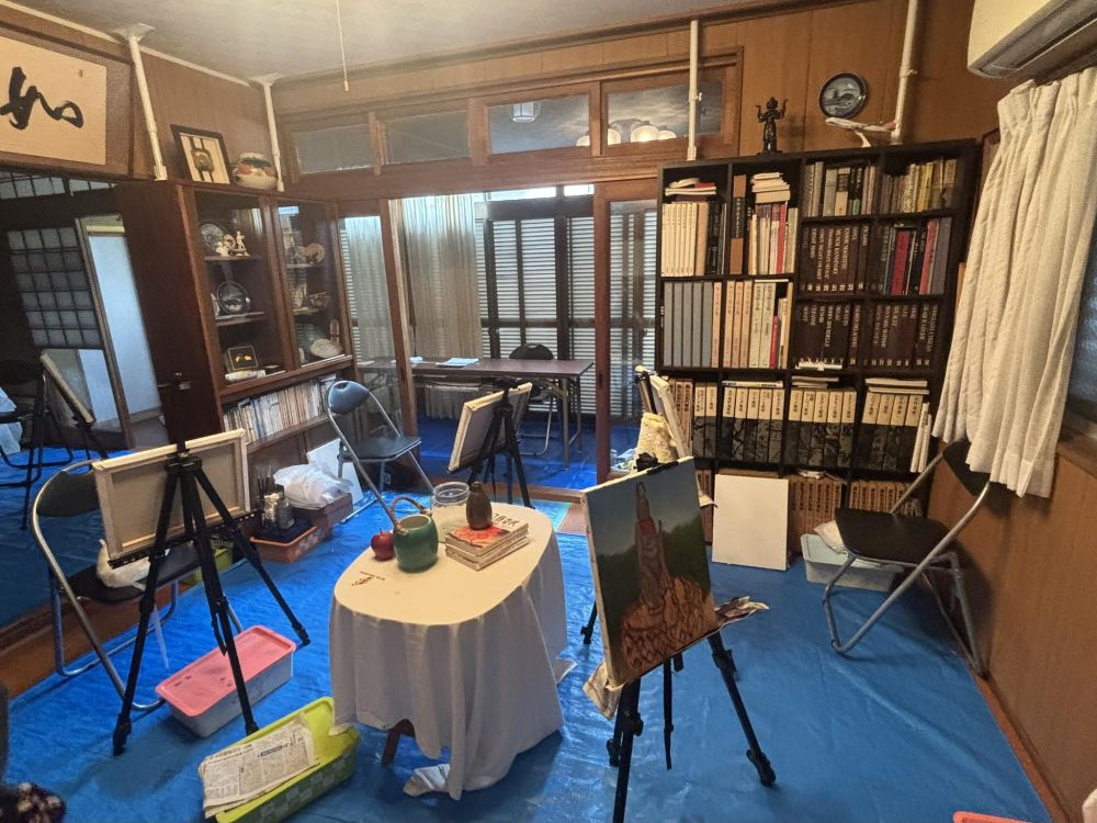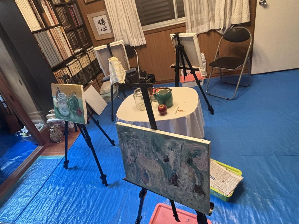 中島さんは後継者を育成していきたいという思いから、サニータウンの中にあるアトリエで定期的(月2回)油絵の教室を開いています。趣味で油絵を習いに来る方がいるのですが、中島さんは油絵の基本的なことだけ指導し、後は生徒さんが自由に描くそうです。