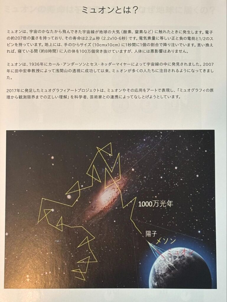 いきなり物理学の話になってしまいましたが、この物理学の世界が、全く接点がないと思われる美術、アートの世界とどうつながっていくのでしょうか?そのことについては、ミュオグラフィアートを紹介する「宇宙に訊ねよ」という冊子に詳しく書かれています。