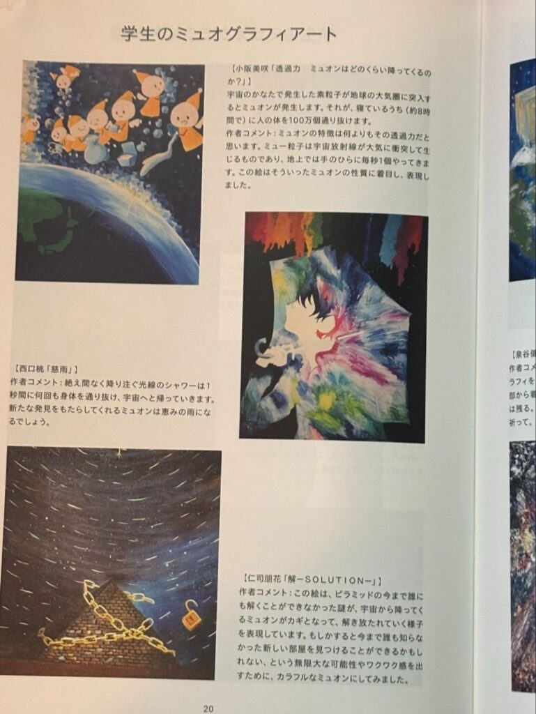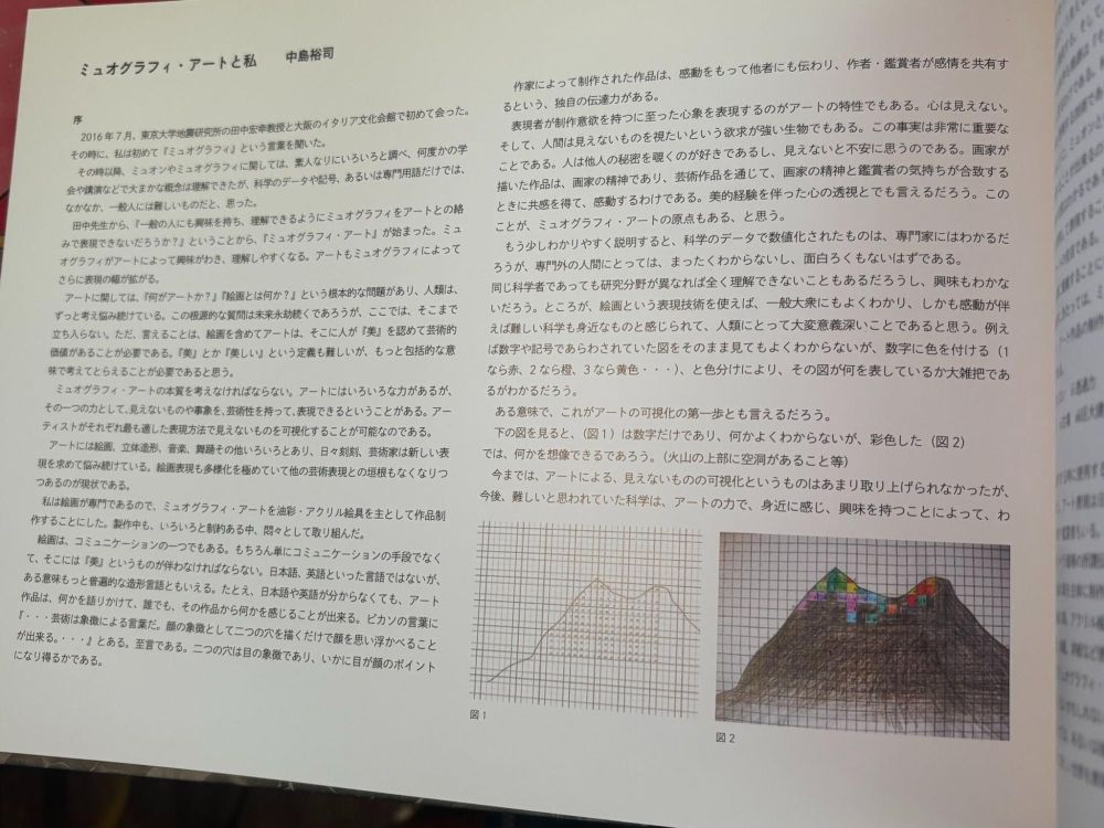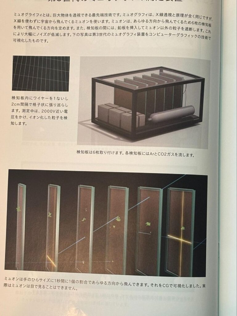 冊子の中に書かれている中島さんのエッセイを要約すると、中島さんはミュオンの透視に成功した田中教授と2016年に大阪のイタリア文化会館で出会った時に、それを知ったそうです。そこでミュオンやミューオグラフィーを独自で調べますが、調べれば調べるほど一般の人には理解が難しいと感じました。