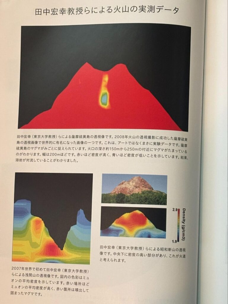 1936年の段階で、宇宙線の中のミュオンの存在が発見されたそうですが、透視(とうし:X線を用いてモニターに映し出す)が成功したのは2007年に田中宏之教授が浅間山で実験した時です。まだ20年ほど前の出来事で、この火山内部の様子をミュオンの動きで撮影したことを例えていうなら、大きなレントゲン撮影のイメージとなります。