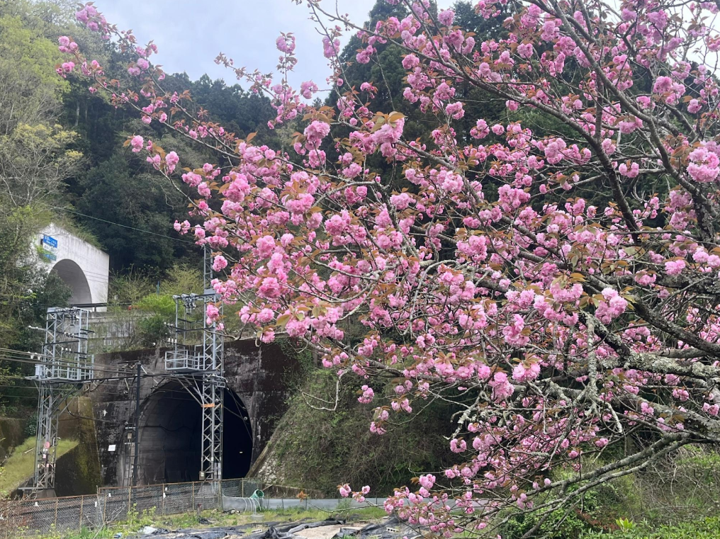 桜といえばソメイヨシノが有名ですが、天見駅からうづく遊歩道沿いの八重桜が美しいです。少し穴場と言える八重桜は桜餅を思わせるような幾重にも重なった桜の花をつけているのが特徴で、蟹井神社方面に向けて桜並木が続いています。桜の咲く時期がソメイヨシノよりも遅く、4月中旬ごろが見頃です。