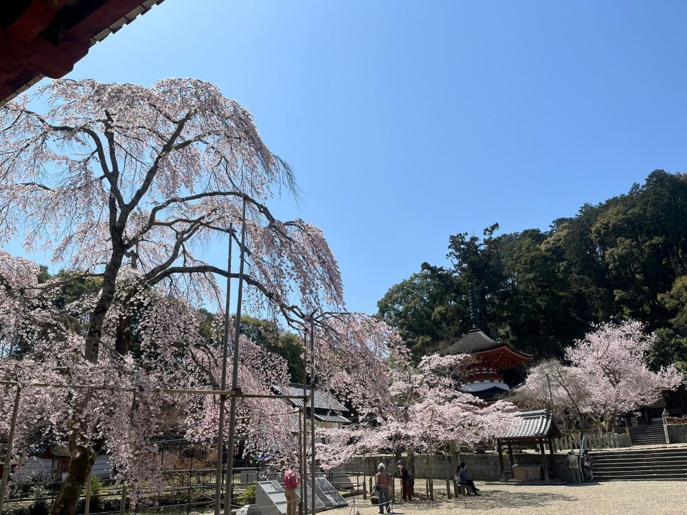 河内長野の桜の名所で最初にご紹介するのが天野山金剛寺です。金剛寺境内には多くの桜の花が咲いていますが、特に金堂や多宝塔が立っている伽藍の中にある一本の枝垂桜は毎年是非見ておきたいところです。