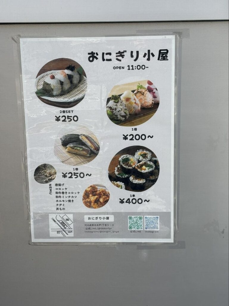 最初は裏道で見つけたおにぎり小屋のメニューです。