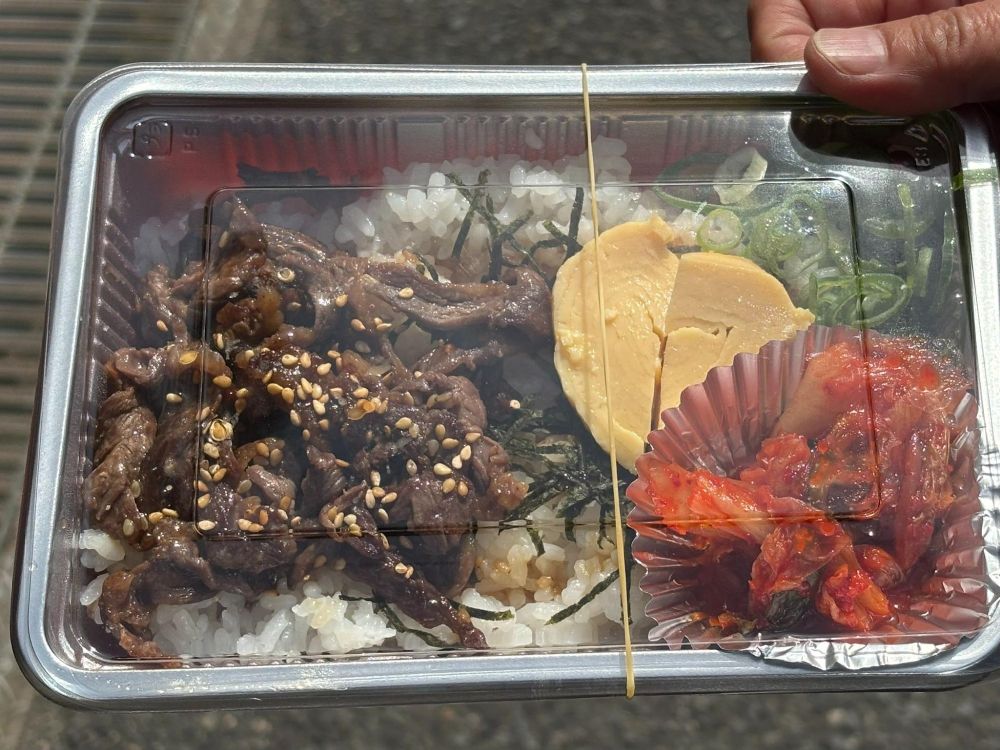 ということでこちらが焼き立ての焼肉弁当800円です。下の画像がハラミ丼(小)600円です。家に帰ってからいただきましたが、がっつりと肉を美味しくいただきました。