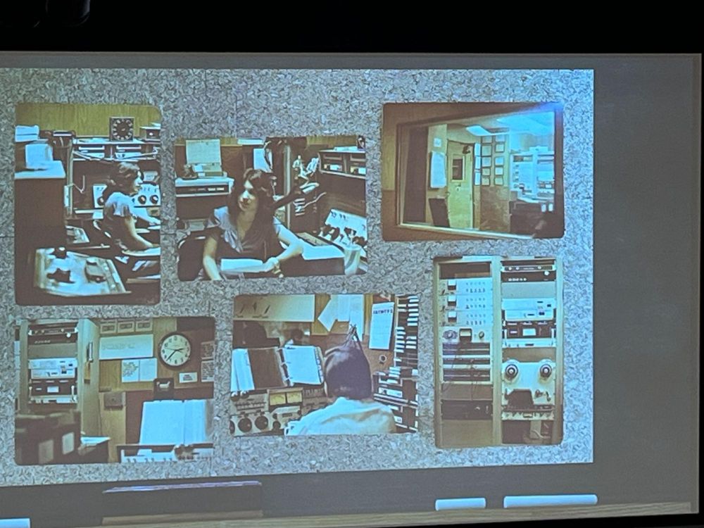 こちらが当時のミニラジオ局の写真だそうです。もう今では使われないような機械だと思います。また驚くほどの少人数で運営していたとのこと。